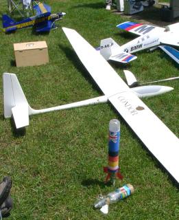 Some of my rockets on display, with a nice large sailplane from my neighbour.